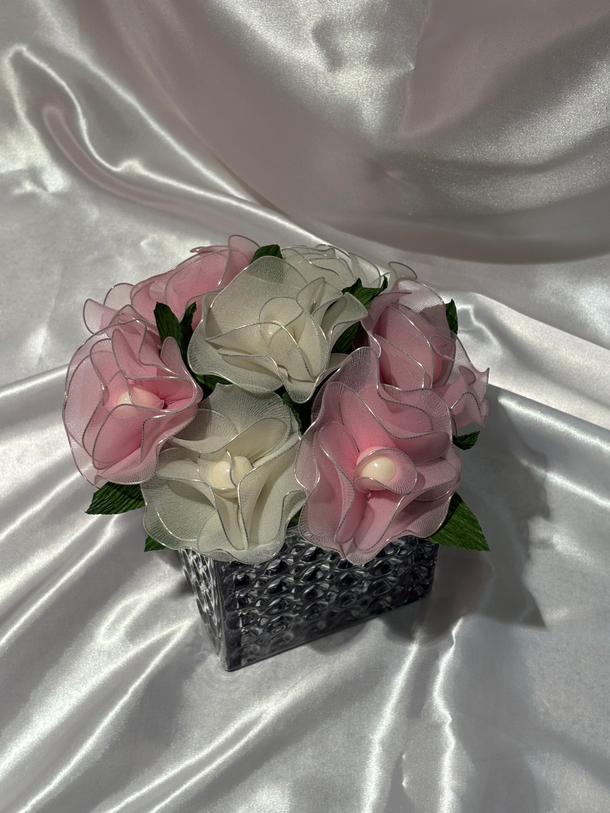 Our unique floral arrangements reflect the ancient tradition of Sulmona's confetti flowers, renowned throughout the world. Talented artisans create beautiful flowers from single coated sugared confetti. Made to order, our flowers can be part of your special occasions or part of your home décor.